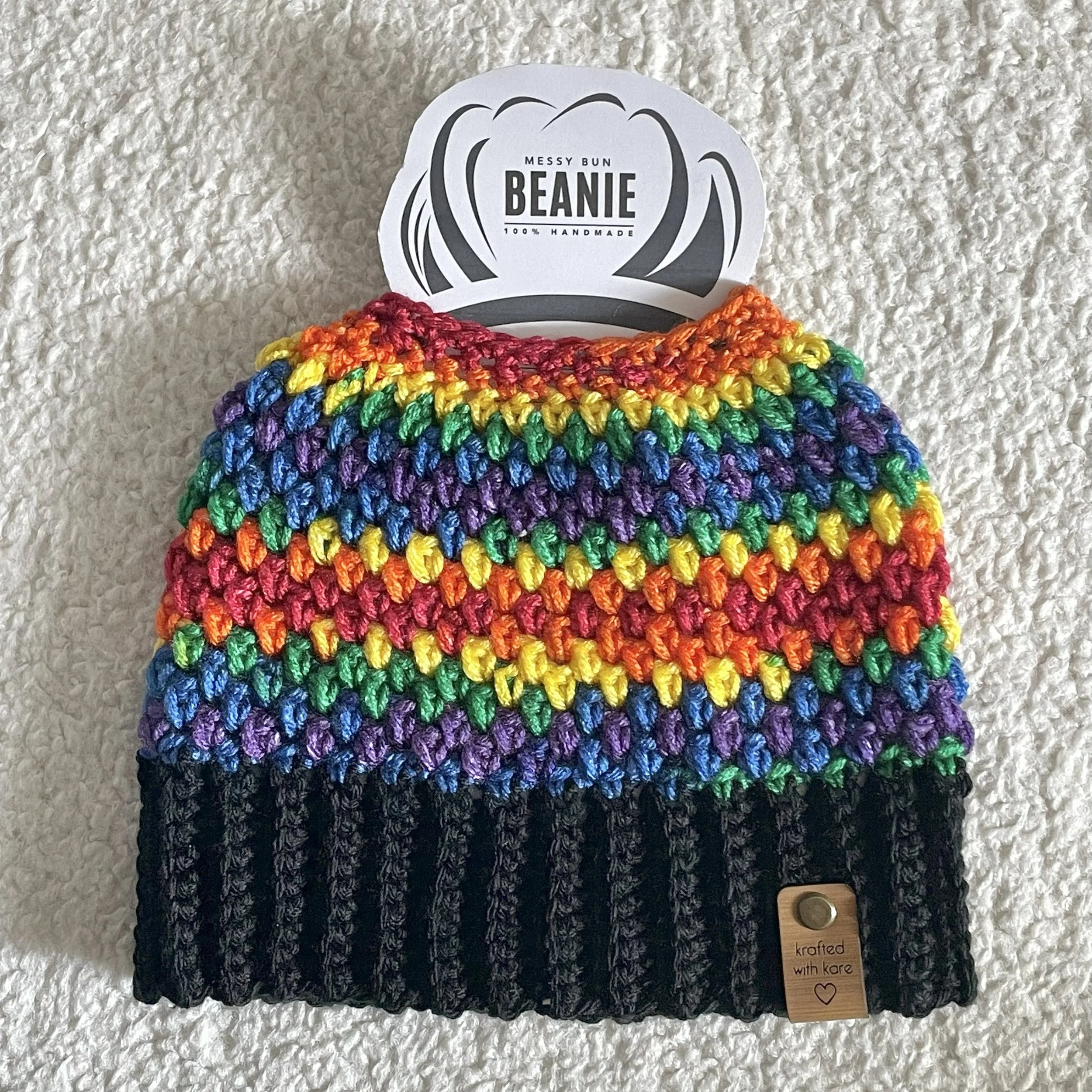 Made with worsted weight, 100% acrylic blend yarn & fits an average-sized adult person’s head (approx. 4-1/2”H x 10”W). Machine wash, LAY FLAT to dry.